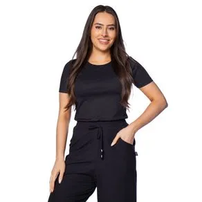 Blusa Feminina Rechsul Básica Canelada Manga Curta Preto