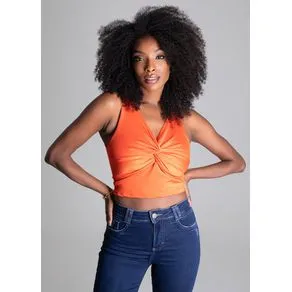 Regata Cropped Feminina Feliny com Gola Média Caramelo