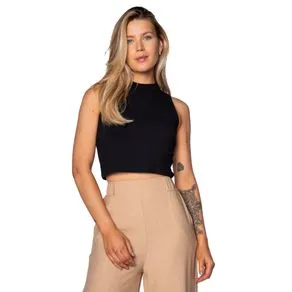 Regata Cropped Feminina Feliny com Gola Média Preto