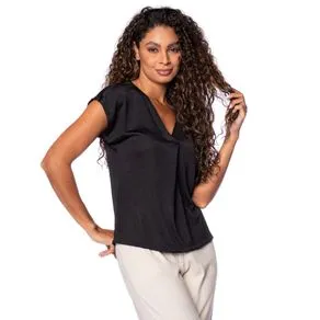 Blusa Feminina Giraffe com Prega Frontal Preto