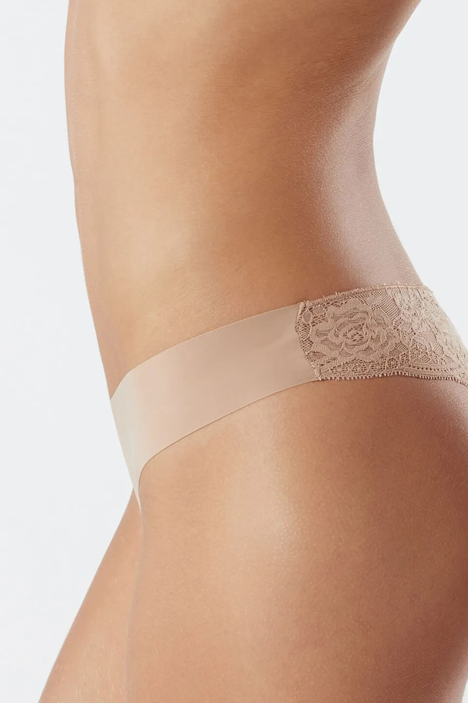 Calcinha Brasileira Em Microfibra Sem Costuras e Renda – Bege