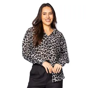 Camisa Feminina Susan Zheng Animal Print Preto/branco