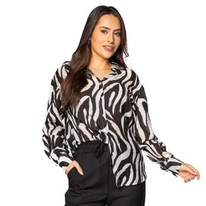 Camisa Feminina Susan Zheng Animal Print Zebra Preto/branco