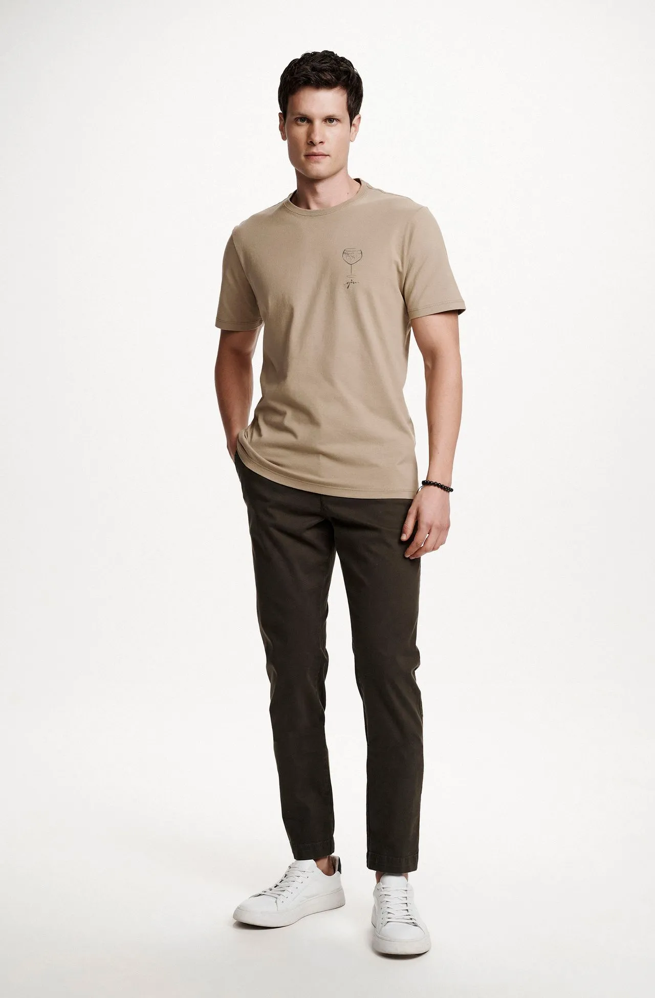 Calça Chino Slim Fit Sarja Stretch Khaki