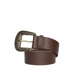 Cinto Feminino Dakota de Couro Fivela com Flores Café