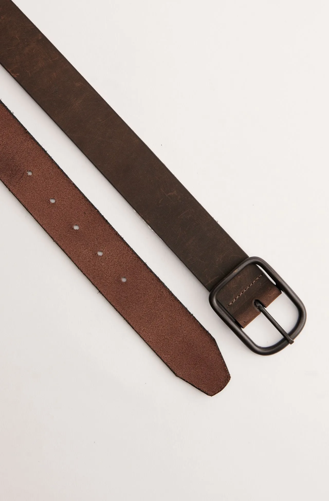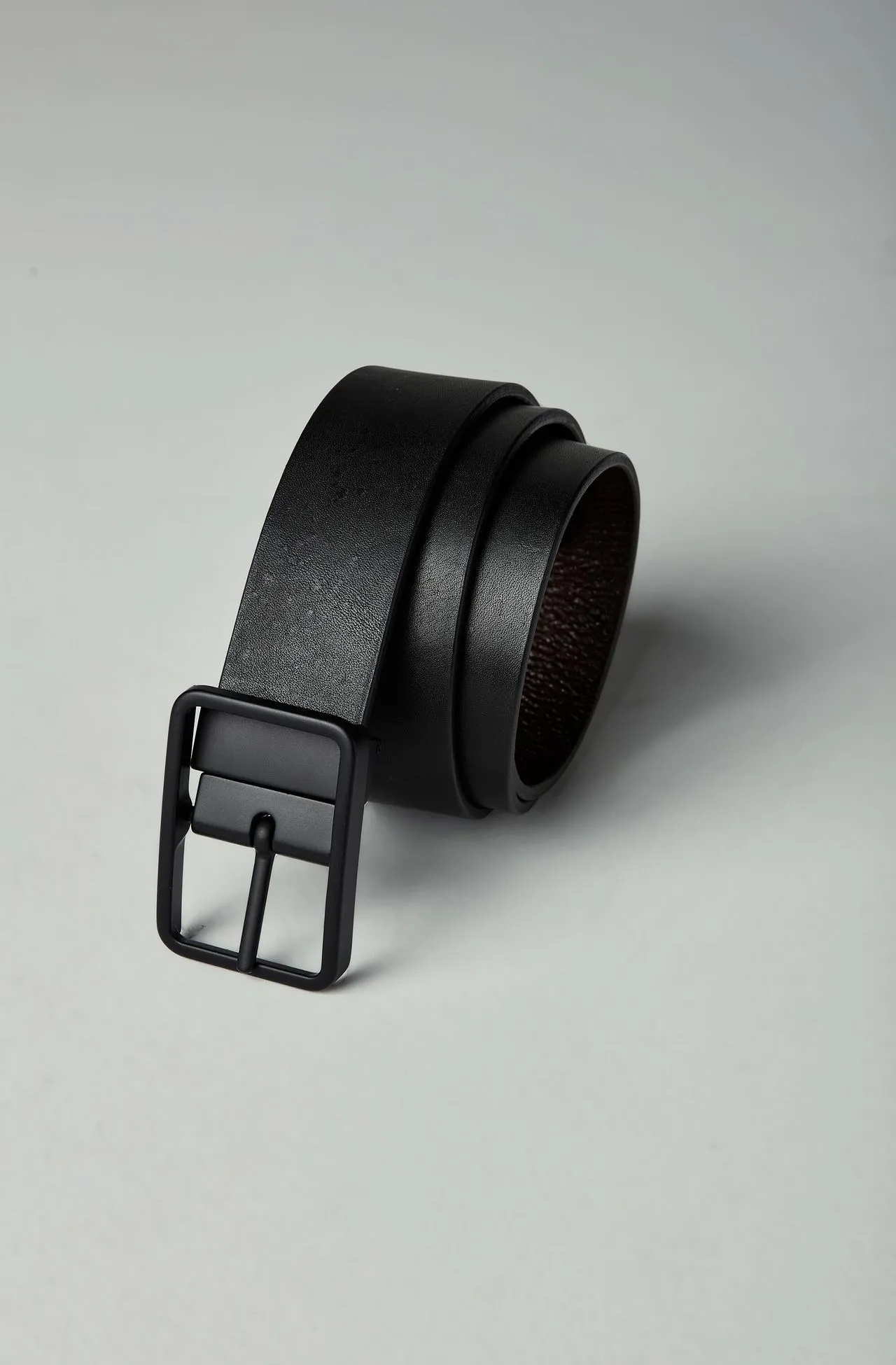 Cinto Casual Dupla Face Couro Preto e Whisky