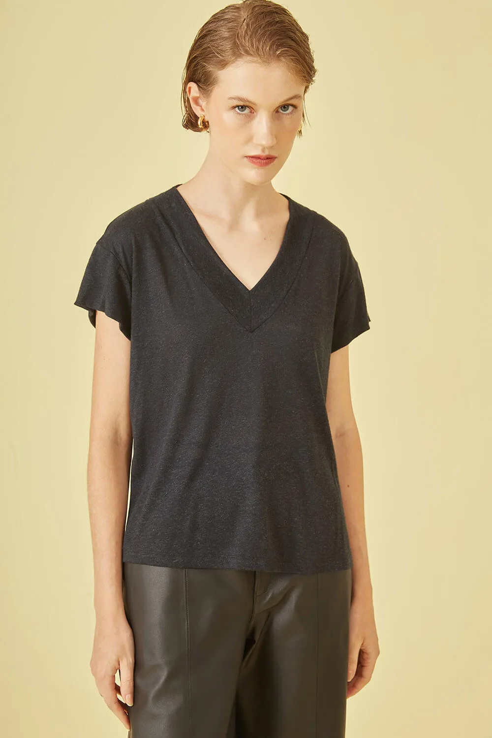 T-shirt gola v em malha preta