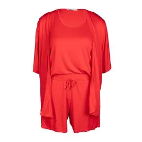 Conjunto Feminino Rovitex Plus Size com Regata, Short e Quimono Vermelho