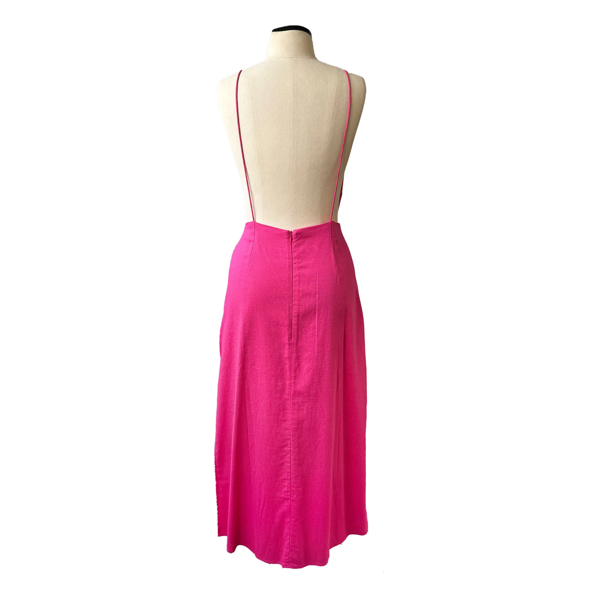 Vestido Priscilla França Midi Linho Rosa