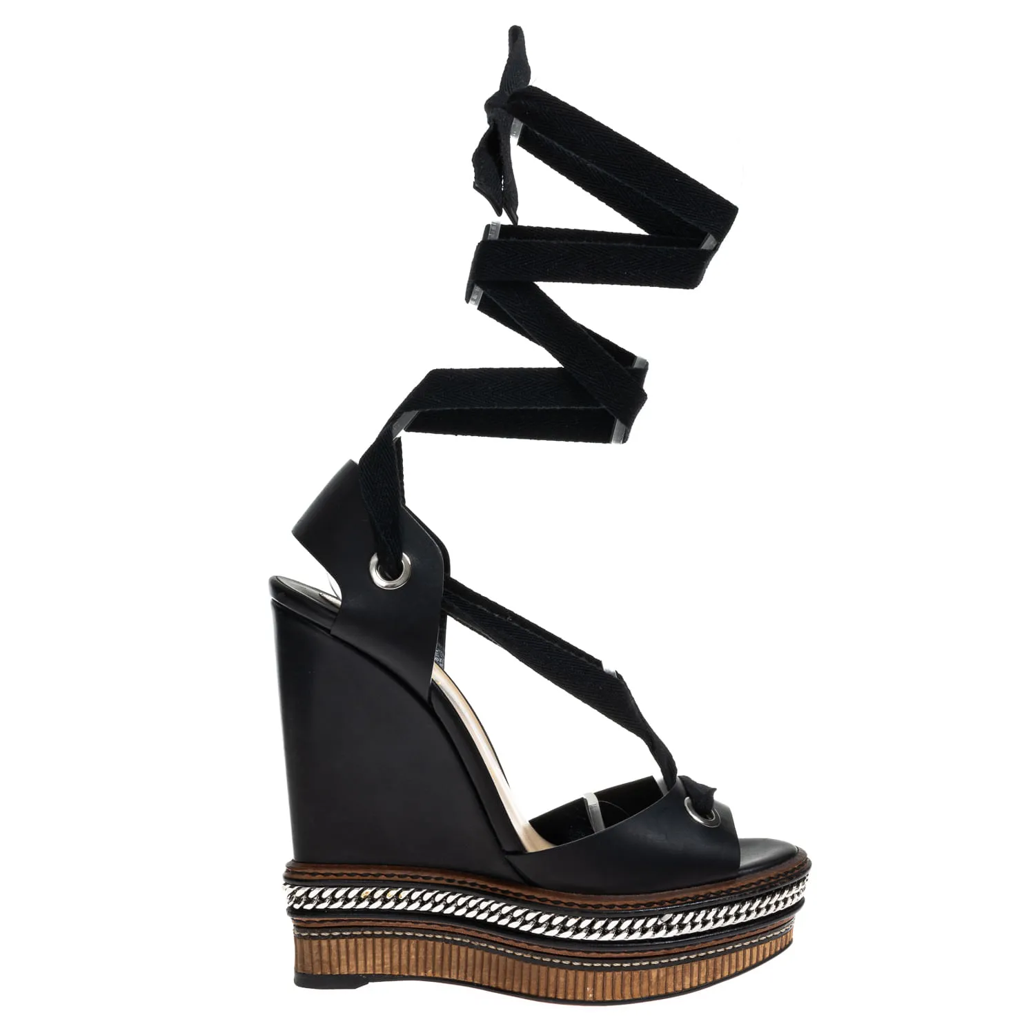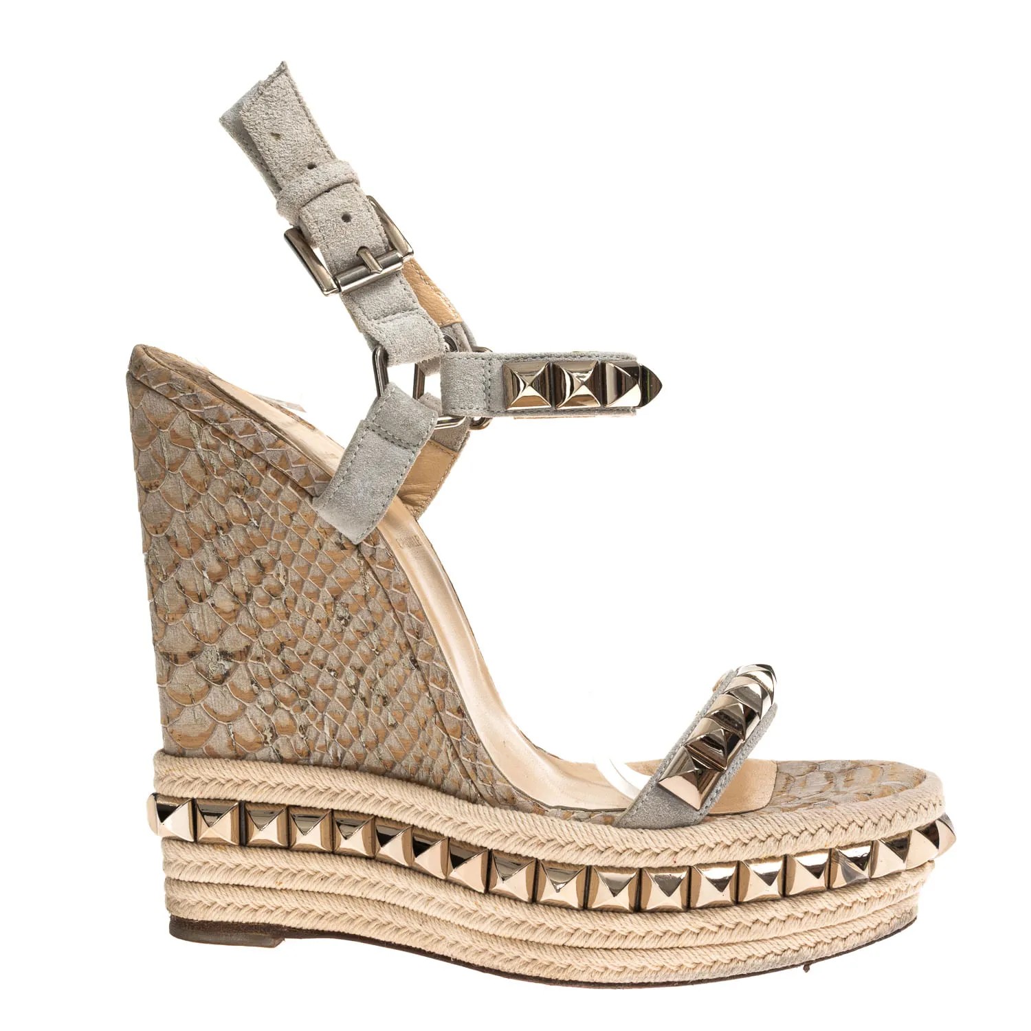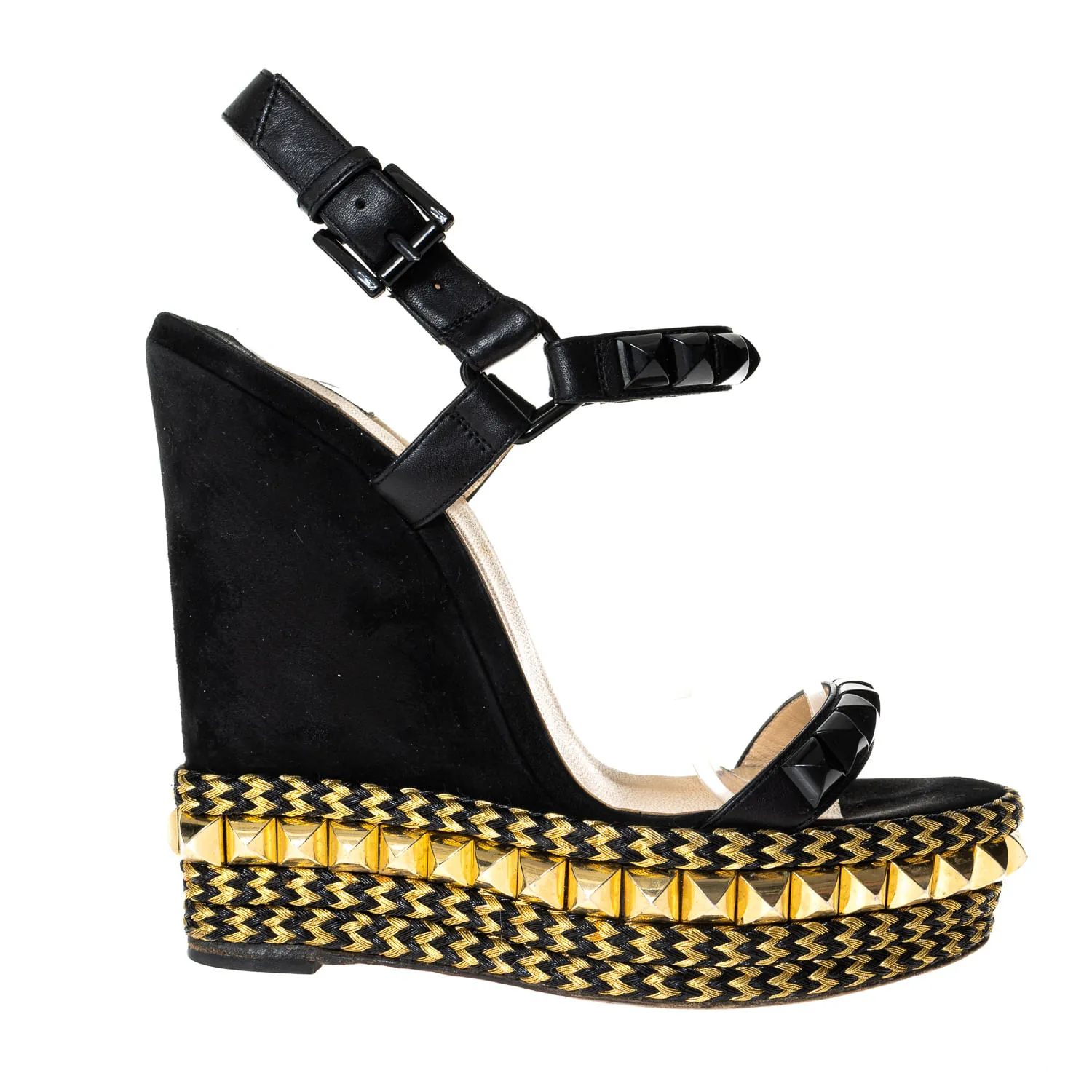 Anabela Christian Louboutin Preta com Spikes Dourados