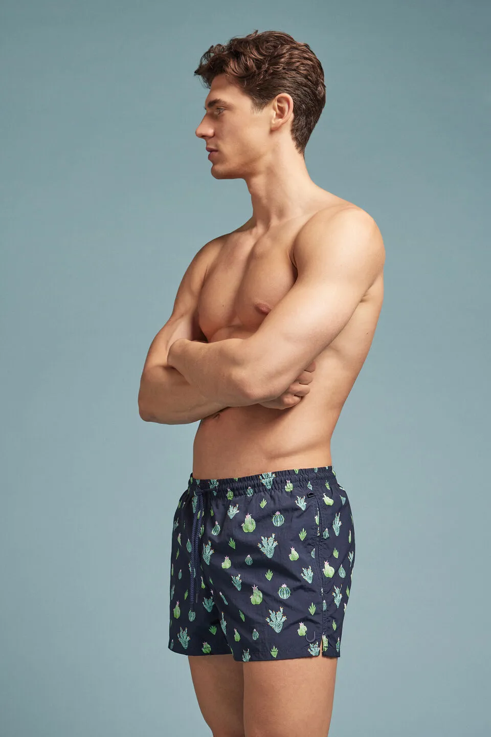 Bermuda De Banho Com Estampa De Cactos – Azul