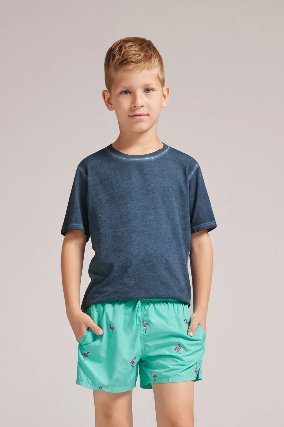 Bermuda De Banho Com Estampa De Flamingos Infantil – Verde