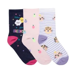 Meia Infantil Selene Kit 3 Pares Divertidas Marinho/Rosa – – 3