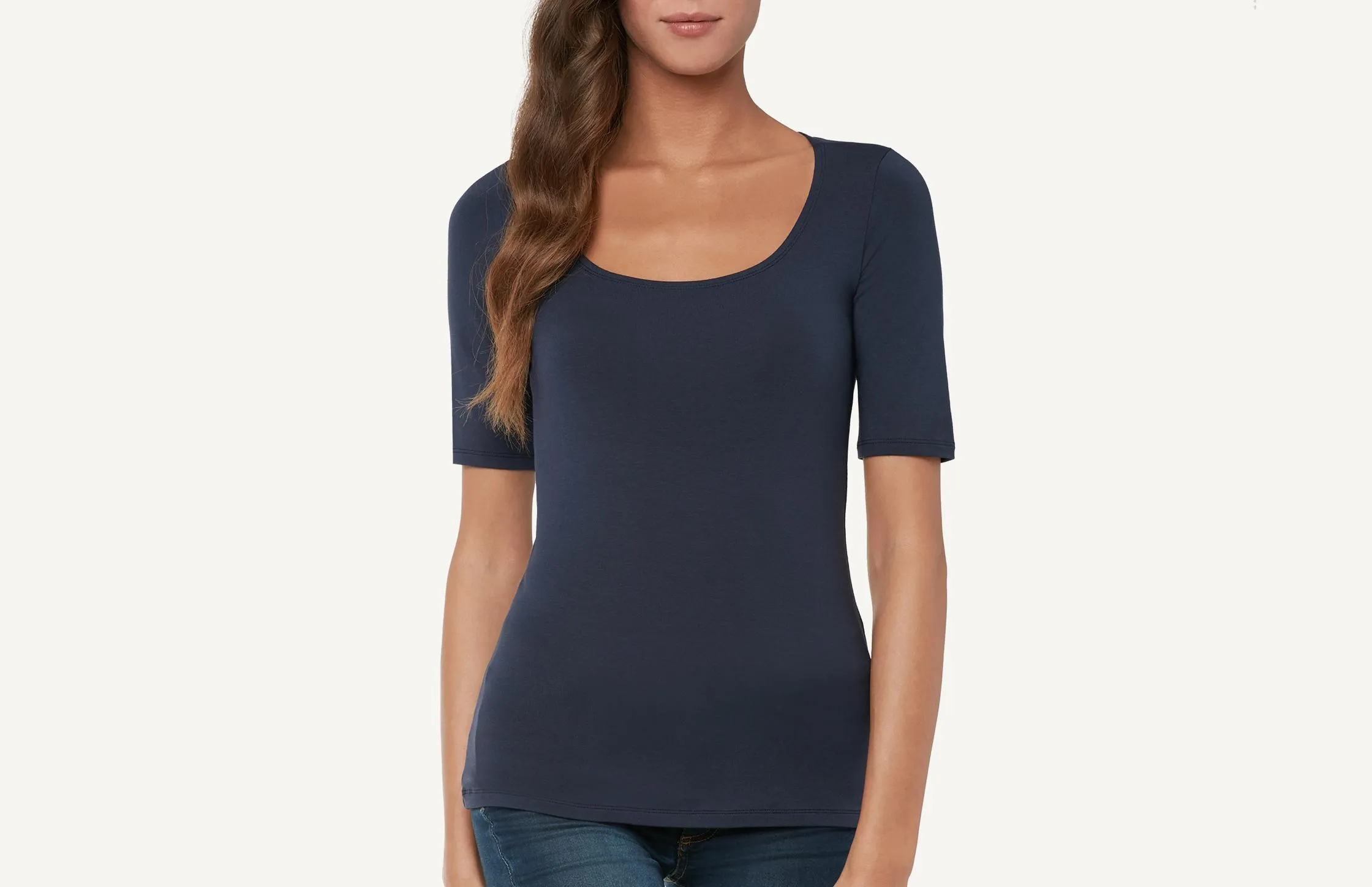 Blusa Com Decote Redondo Em Modal Cashmere – Azul