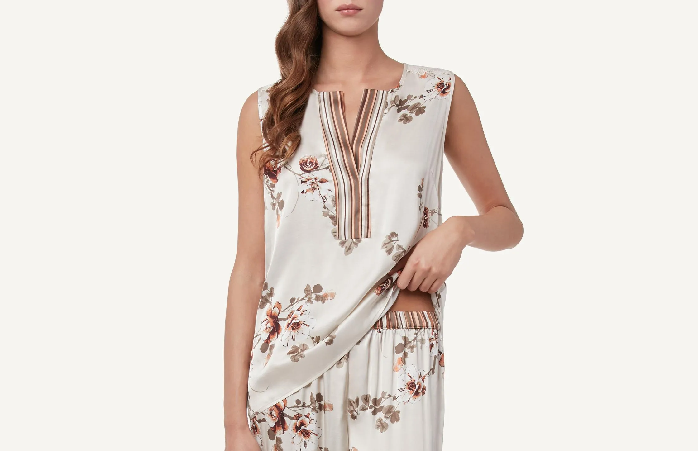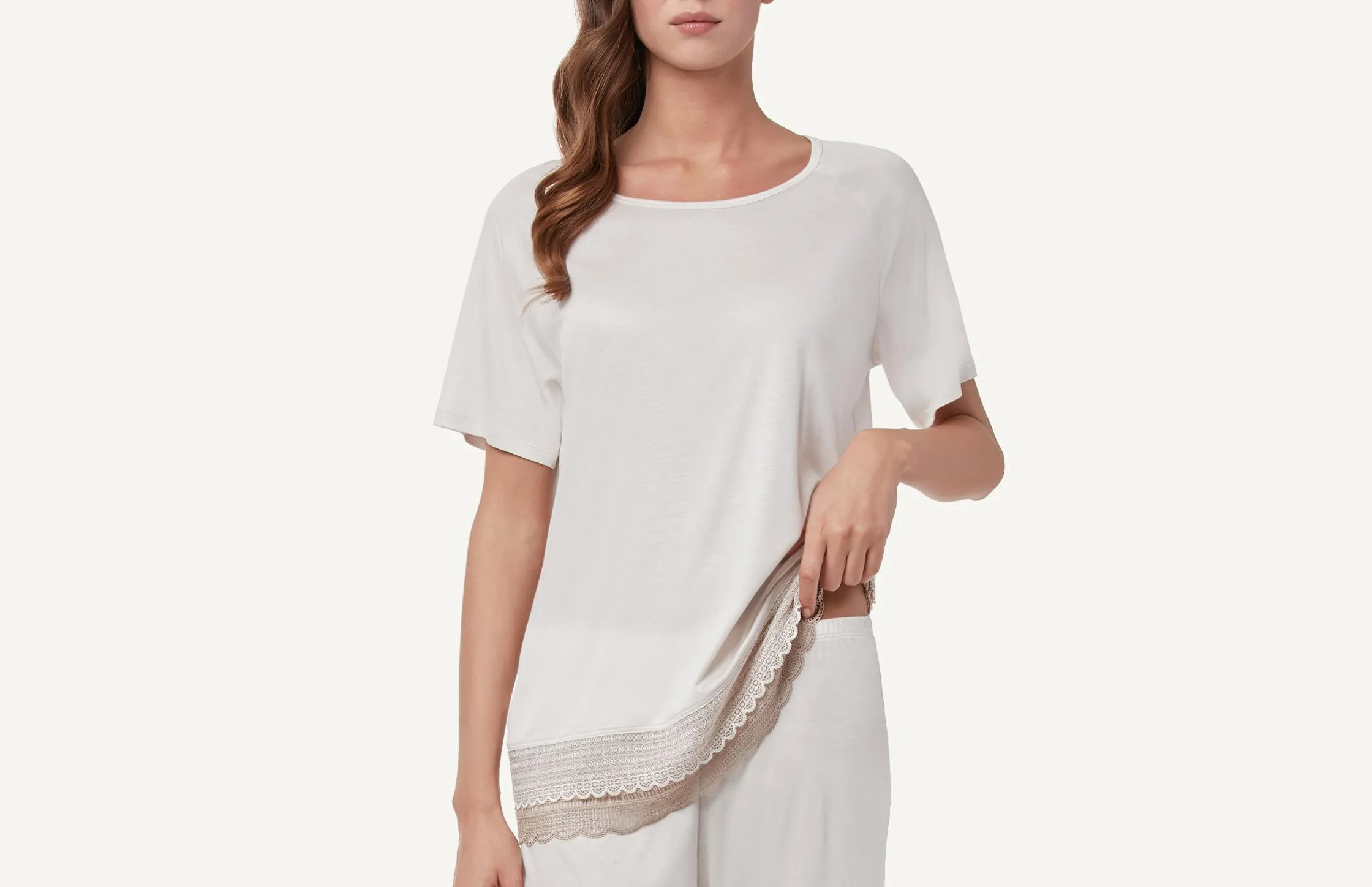 Blusa Com Dupla Faixa De Renda – Bege