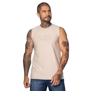 Regata Masculina Gangster com Textura e Estampa em Relevo Bege