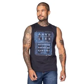 Regata Masculina Gangster Plus Size com Estampa e Textura Preta