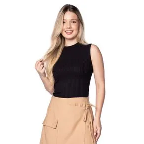 Regata Feminina Cativa Canelado Power Gola Média Preto
