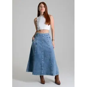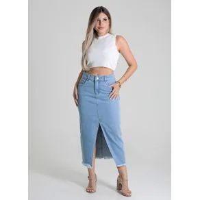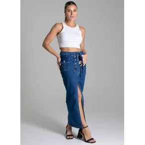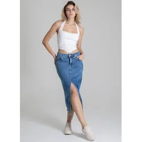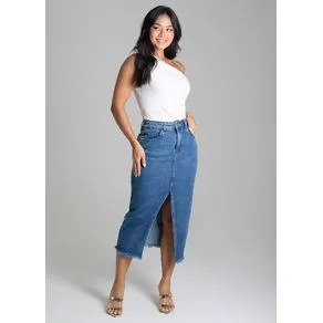 Saia Midi Feminina Nega Rio com Fenda e Detalhe Franzido Preto