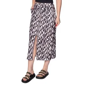 Saia Midi Feminina Olho Fatal Estampada com Fenda Preta