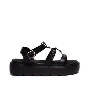 Sandália Infantil Molekinha Flatform com Tachas e Brilhos Preto