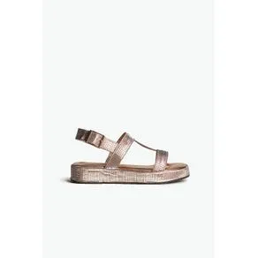 Sandália Infantil Pink Cats Flat com Brilho Ouro Rosado