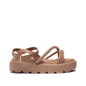 Sandália Infantil Molekinha Flatform Tiras Trançadas e Strass Nude