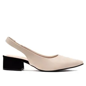Sapato Feminino Bebecê Slingback Salto Grosso Off White