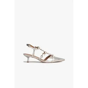 Sapato Feminino Via Marte Bico Fino com Strass Creme