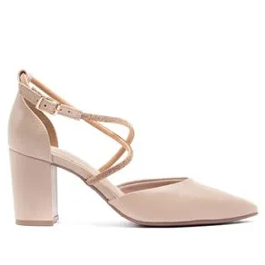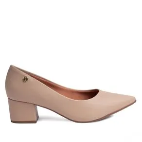 Sapato Feminino Vizzano Bico Fino Salto Bloco Bege