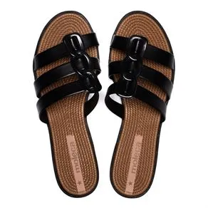 Rasteira Feminina Moleca com Tiras e Elos Preto