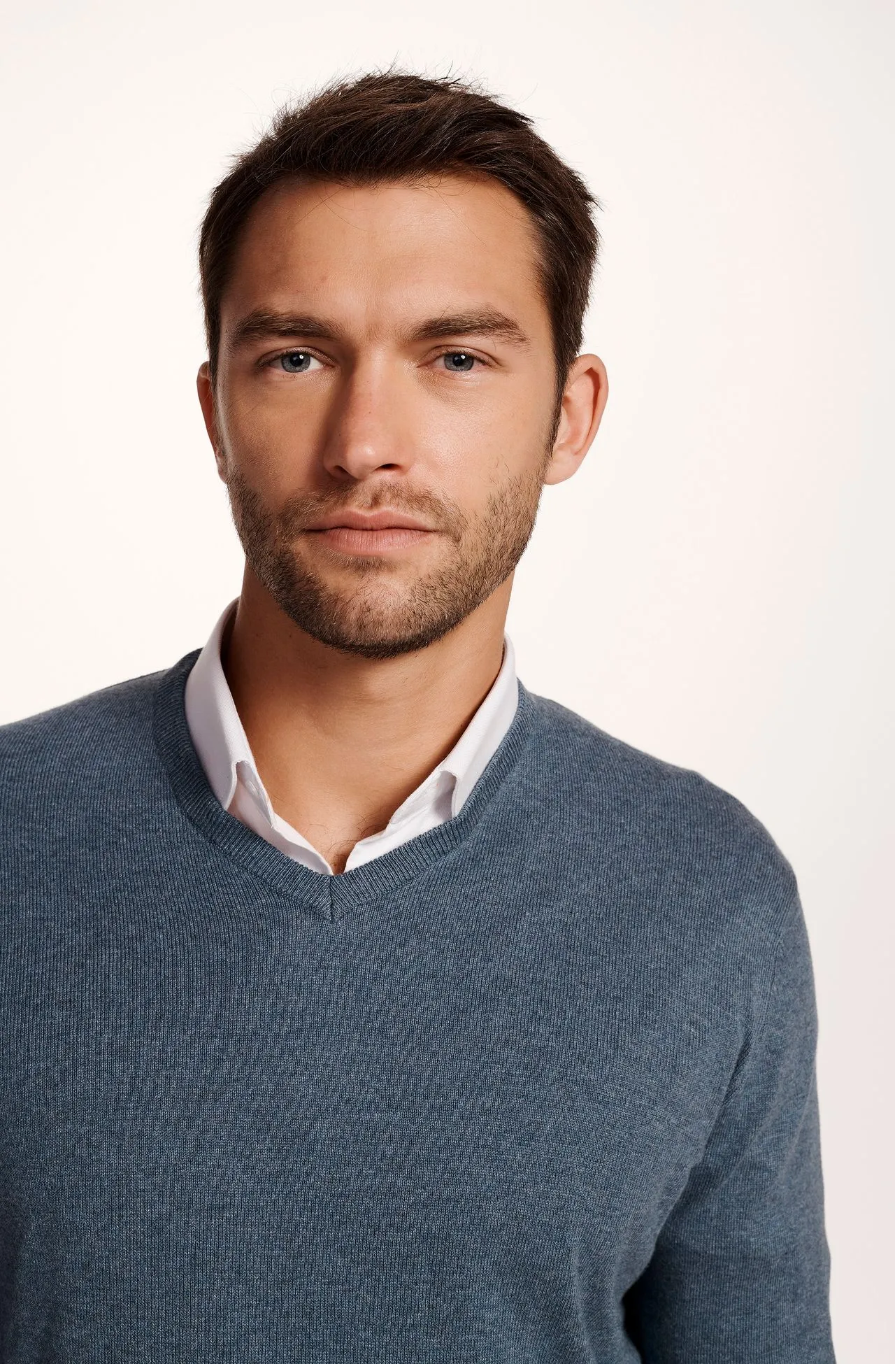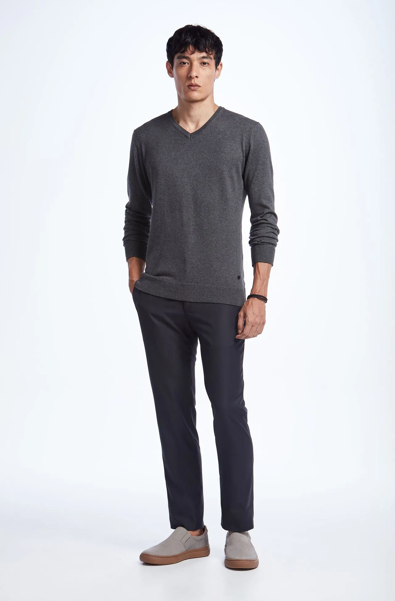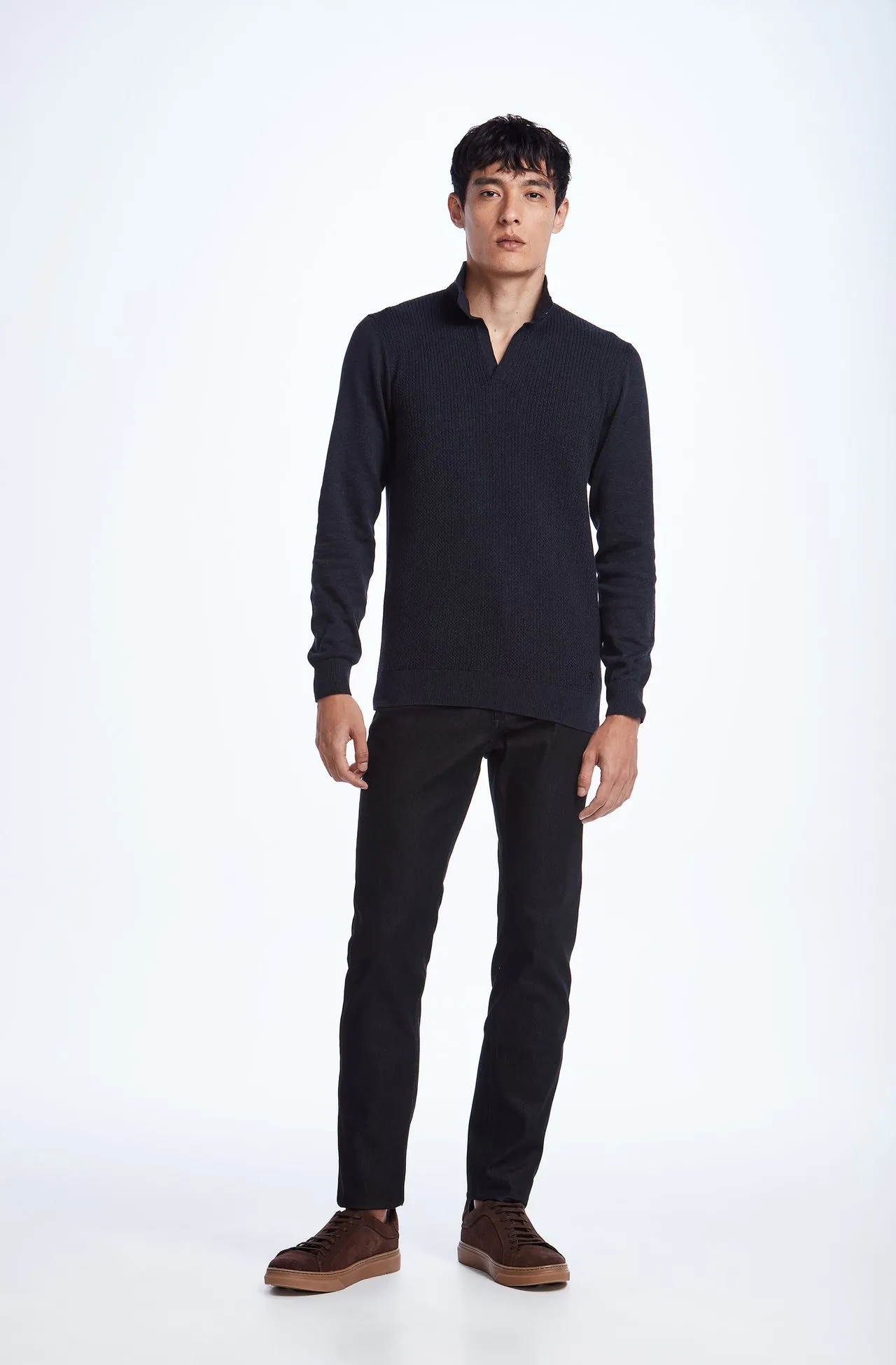 Tricot Gola Com Ajuste Em Algodão Mescla Marinho
