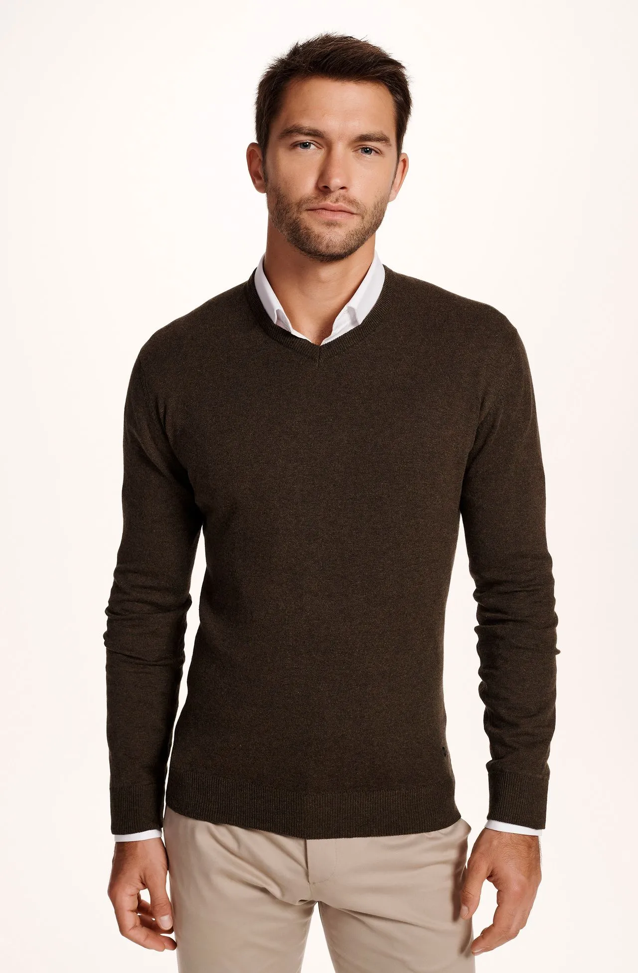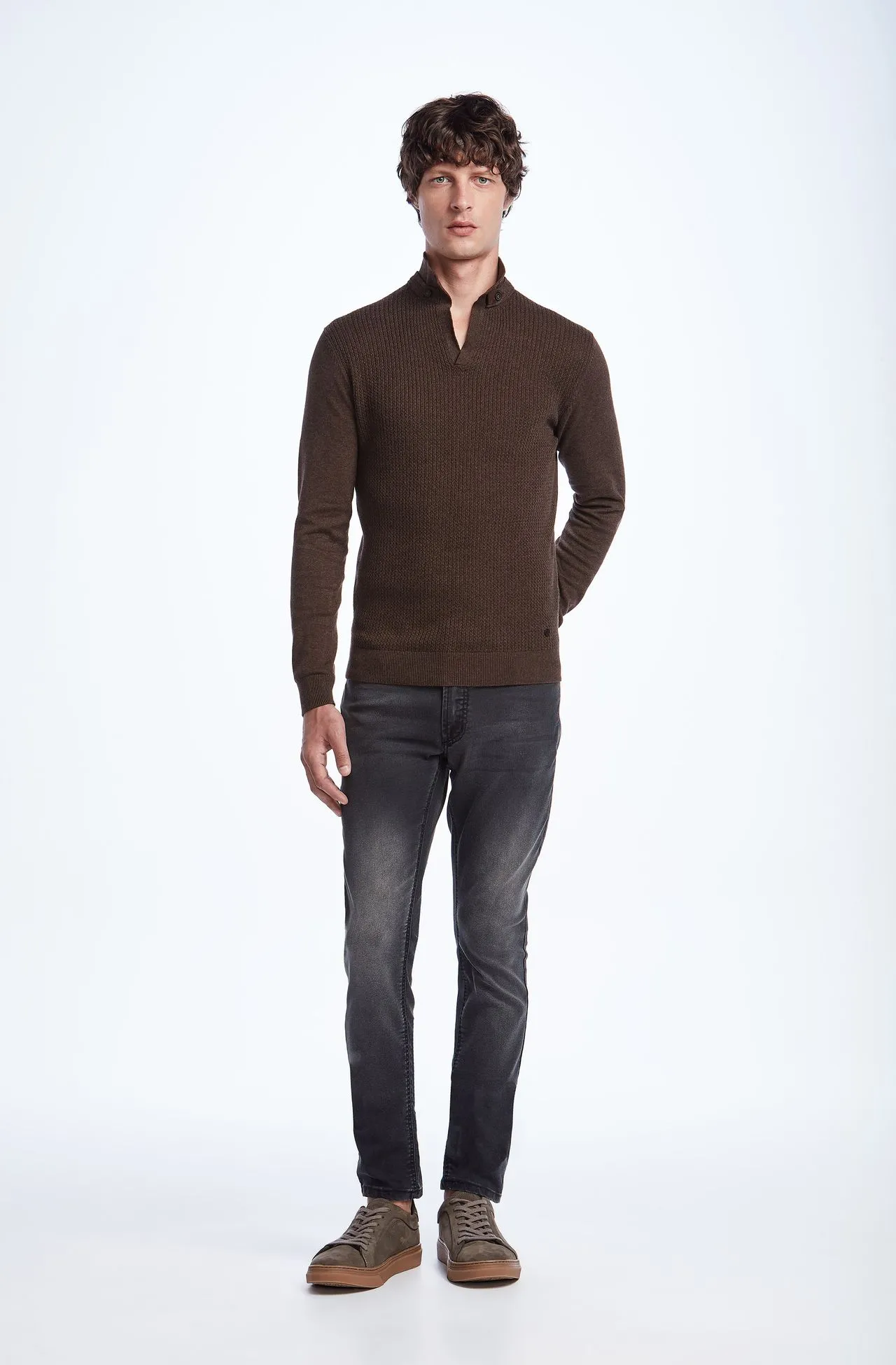 Tricot Gola Com Ajuste Em Algodão Mescla Marrom
