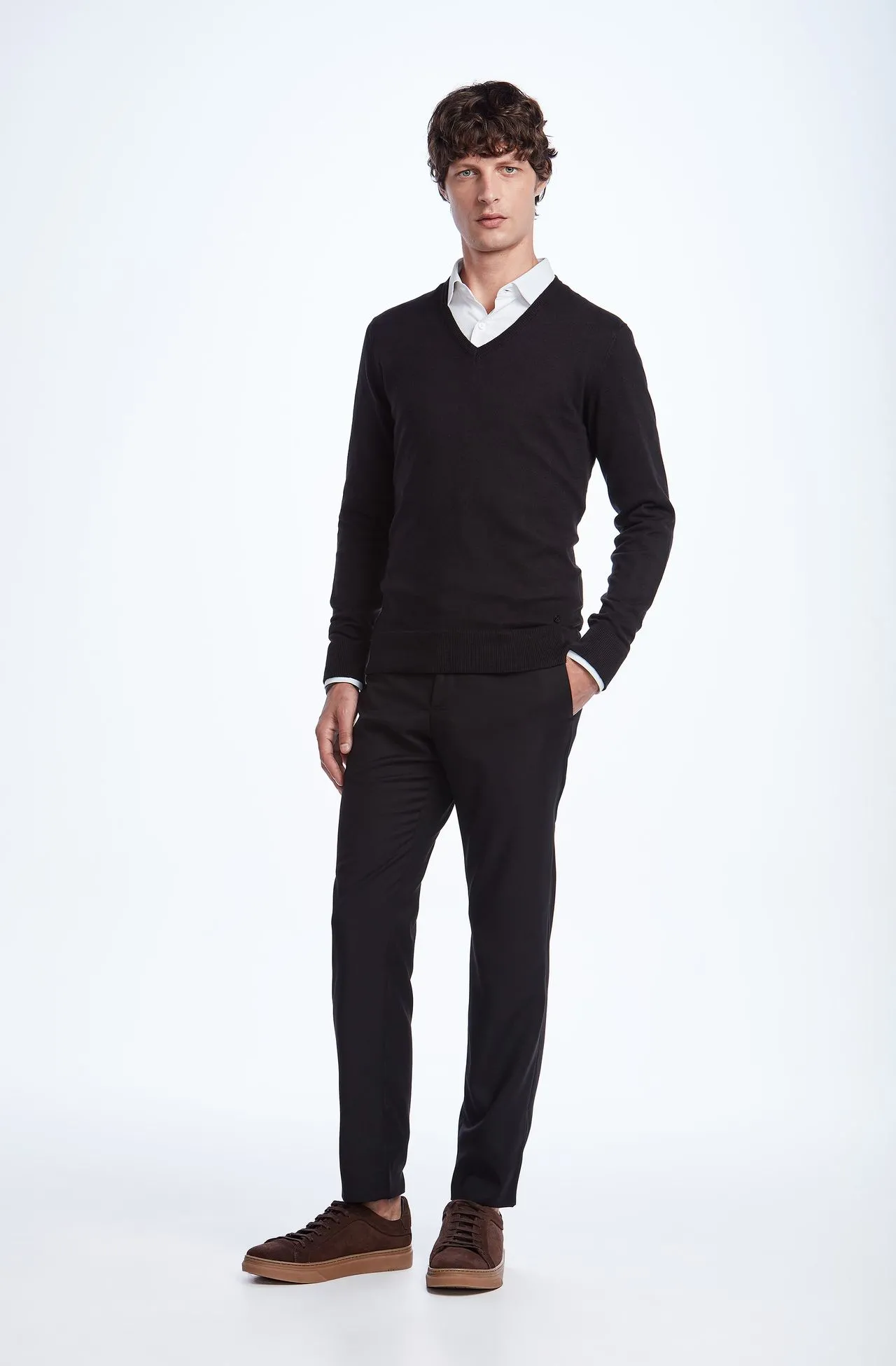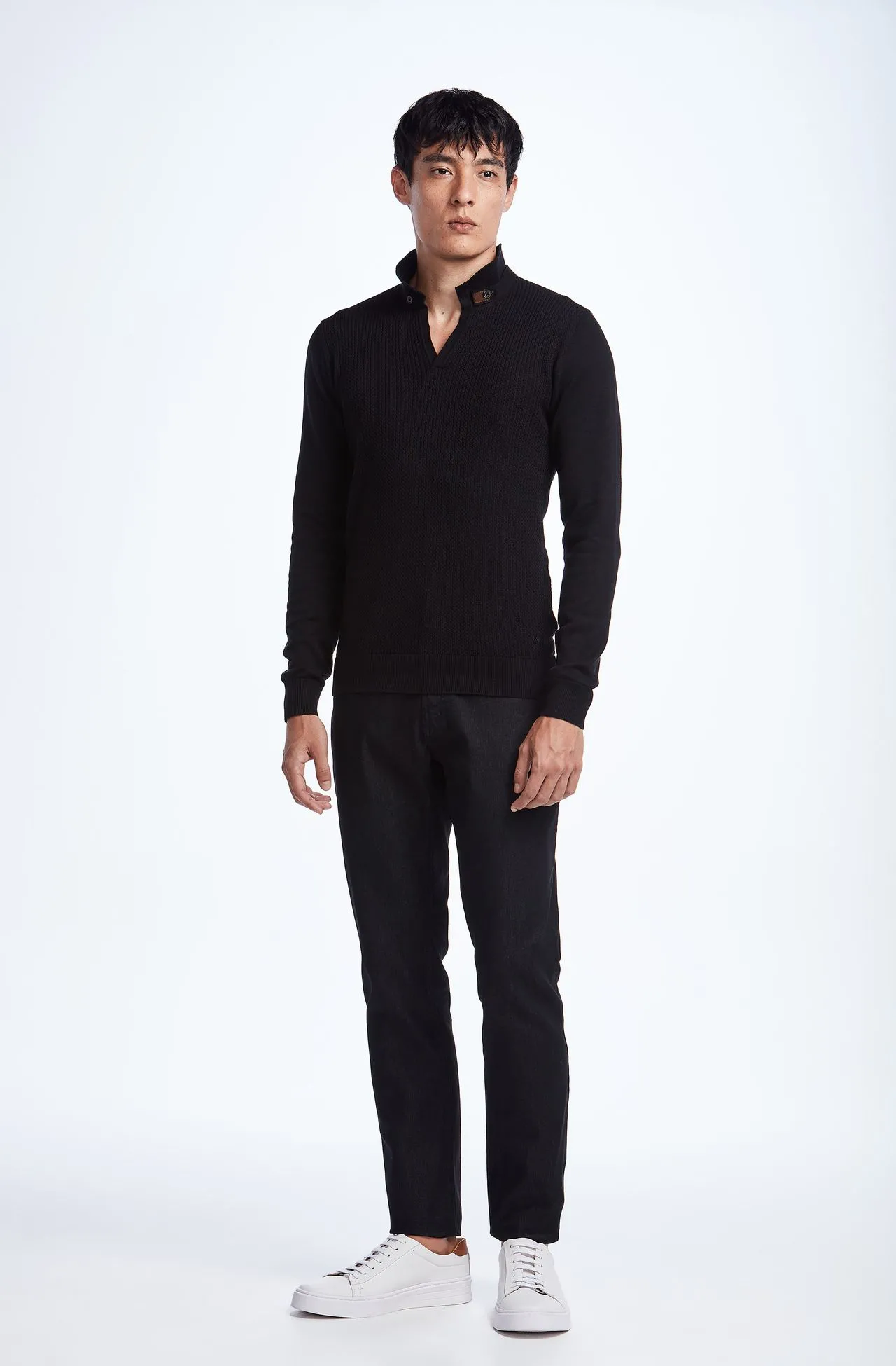 Tricot Gola Com Ajuste Em Algodão Mescla Preto
