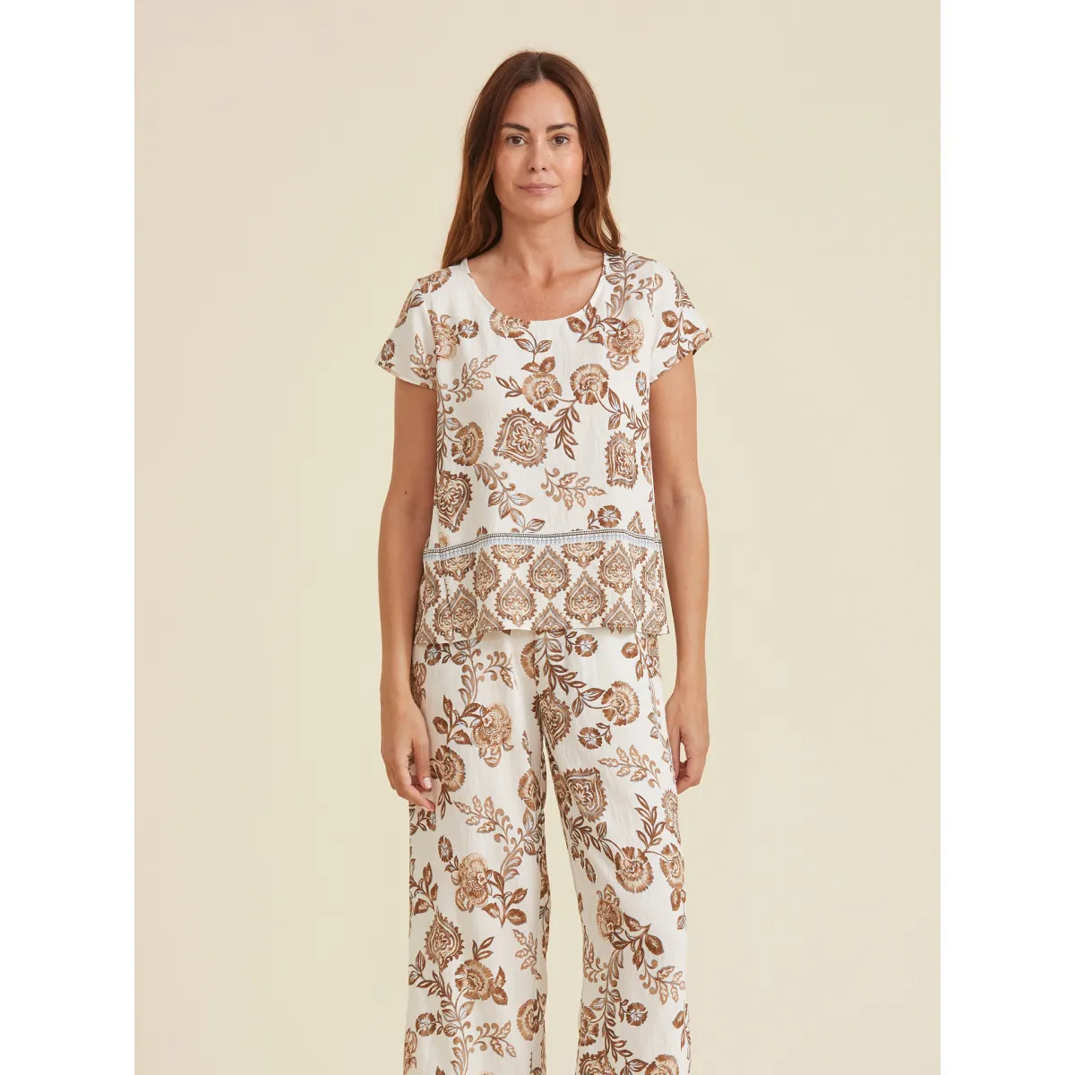 Blusa Em Modal Ultralight Com Cashmere e Renda – Bege