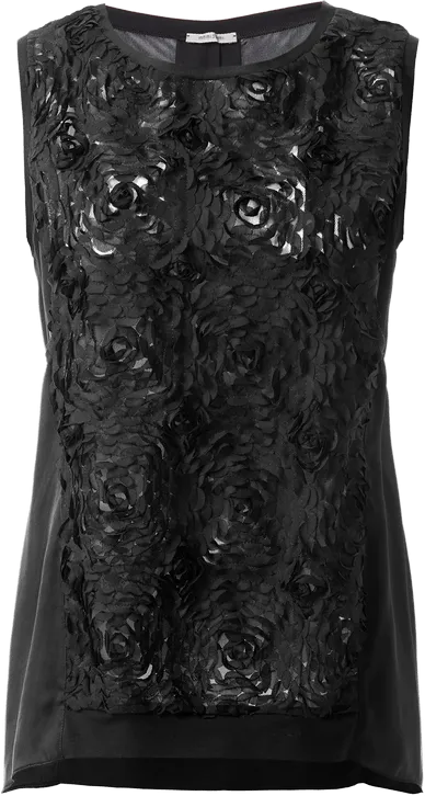 Blusa De Alcas Largas Com Bordado De Rosas – Preto