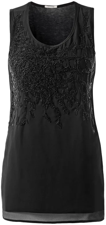 Blusa De Alcas Largas Com Bordado De Perolas – Preto