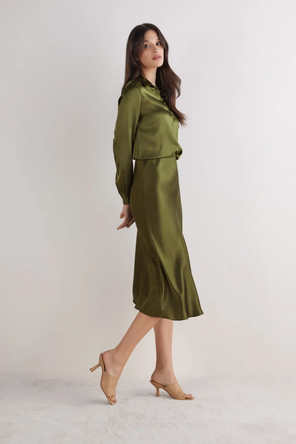 Saia Midi Em Seda – Verde