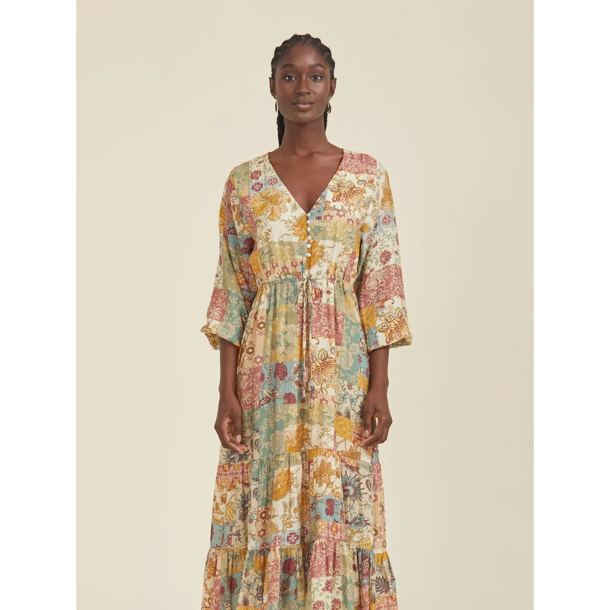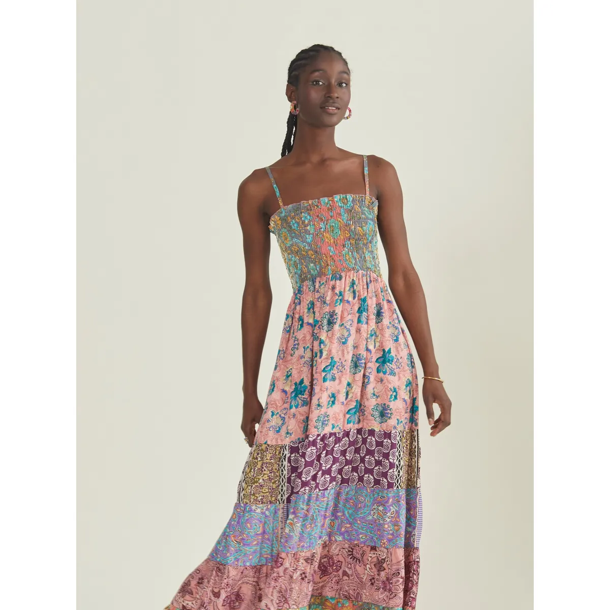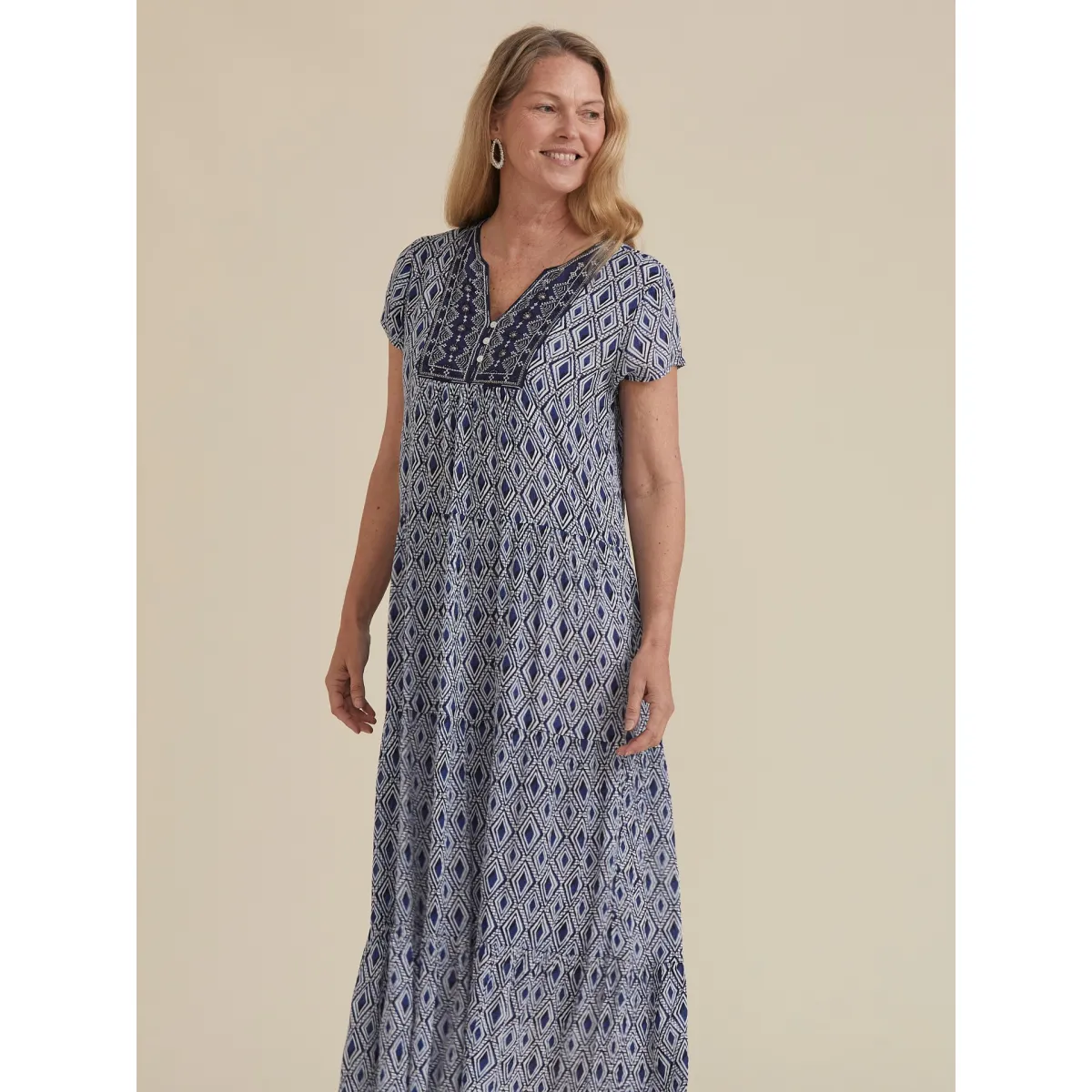 Vestido Comprido Em Malha Perfurada Elastica Tropical