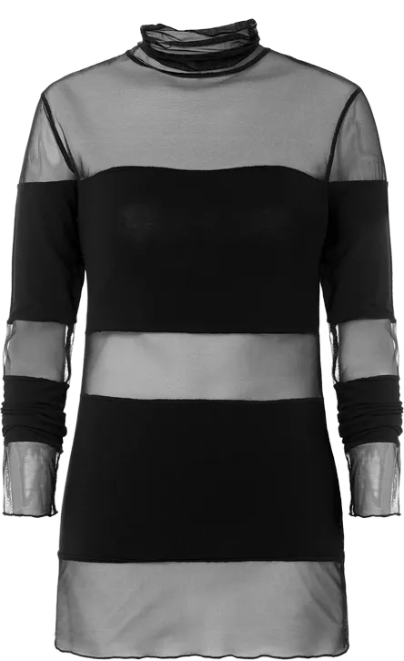 Blusa De Gola Alta Em Modal e Tule As Riscas – Preto