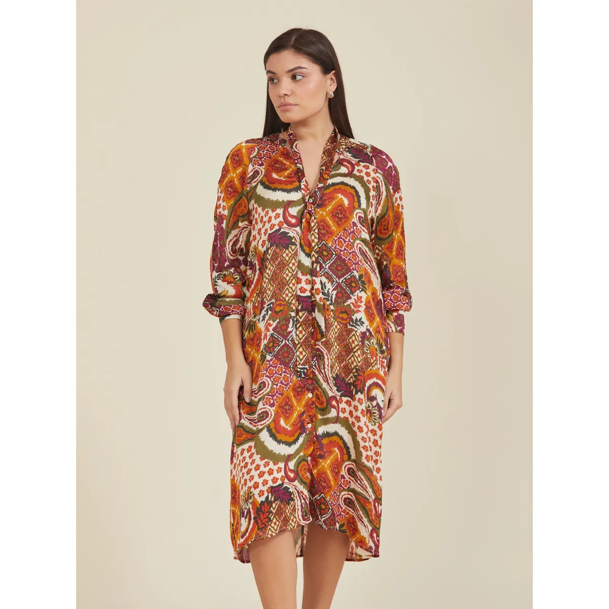 Vestido Curto Estampado Laranja