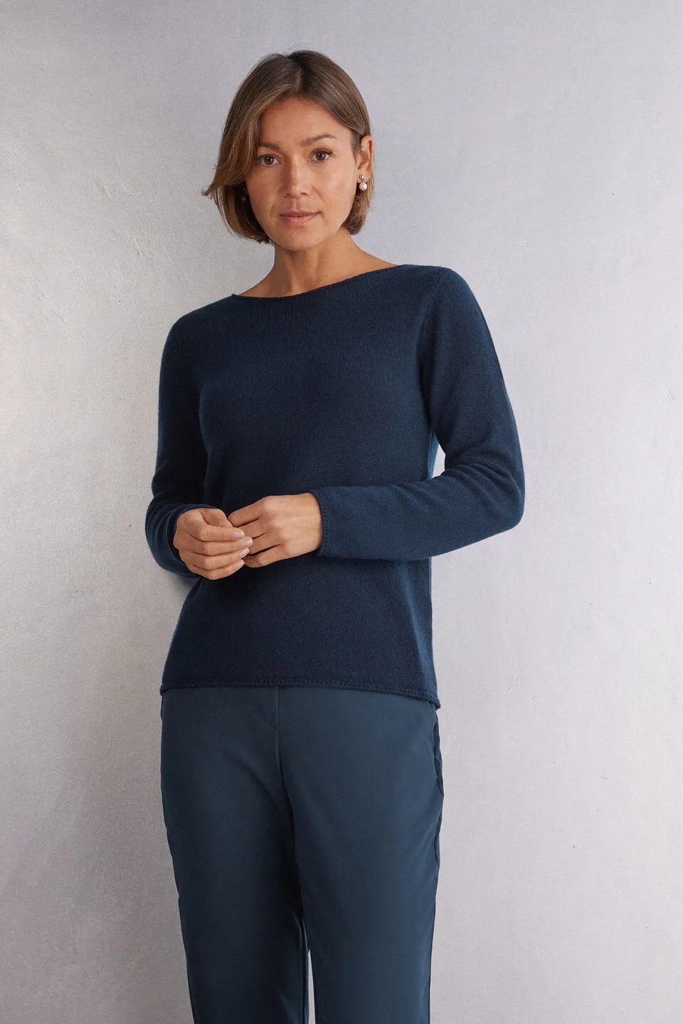 Blusa De Manga Comprida 100% Cashmere – Azul