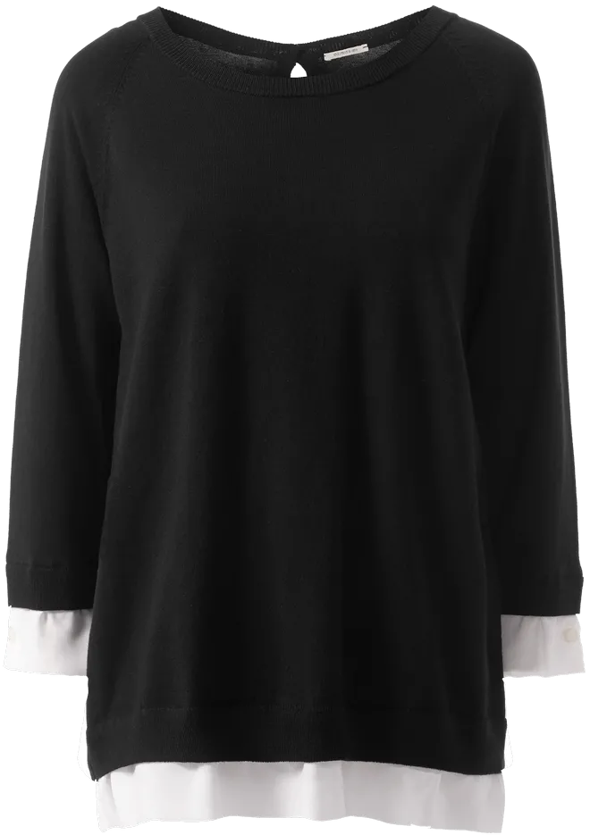 Blusa De Manga Comprida Com Georgette Contrastante – Preto