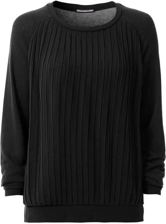 Blusa De Manga Comprida Com Aplicação Em Plissado – Preto