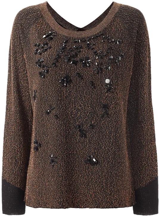 Blusa De Manga Comprida Com Aplicação Em Lantejoulas – Preto