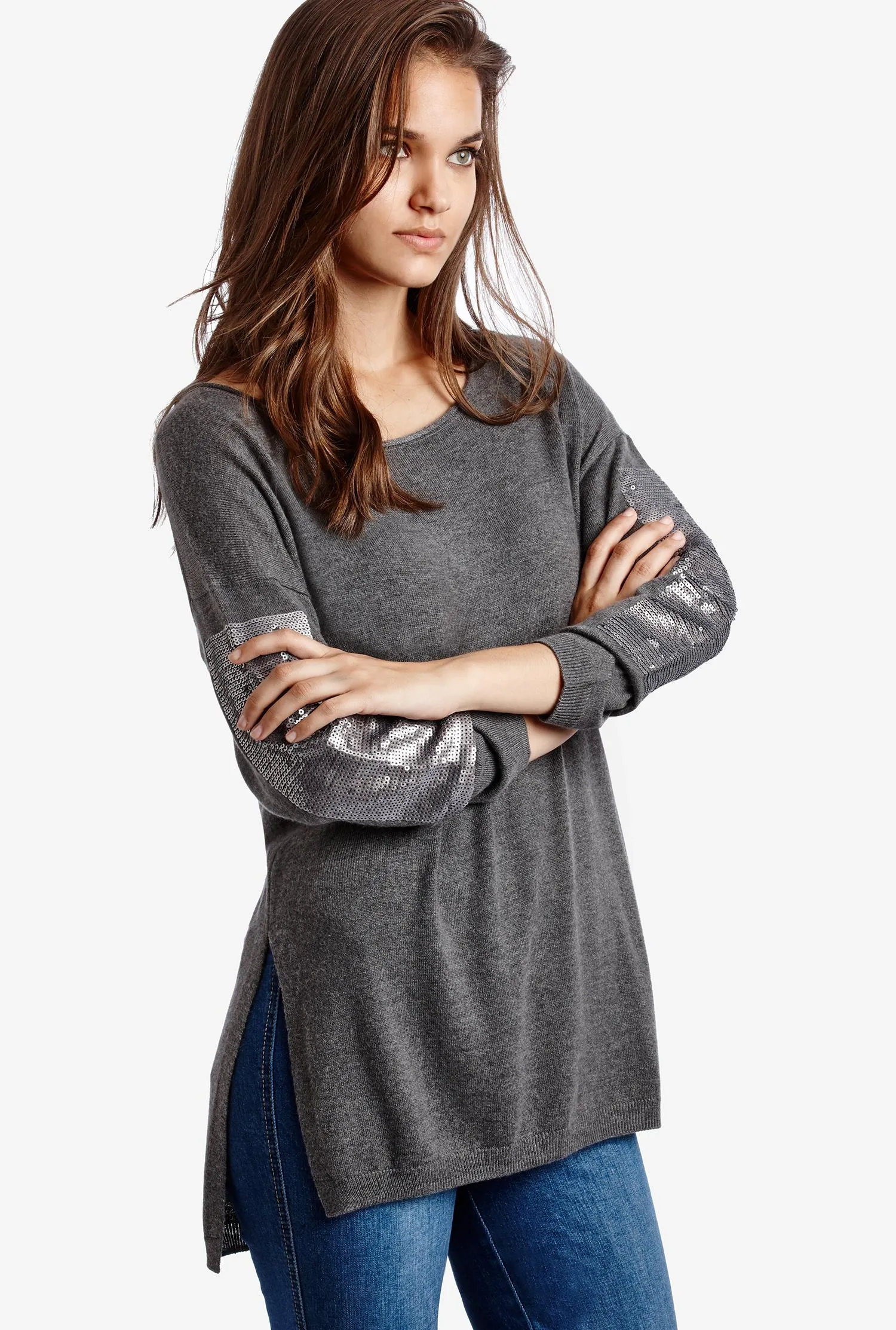 Blusa De Manga Comprida Com Aplicação Bijoux – Cinza