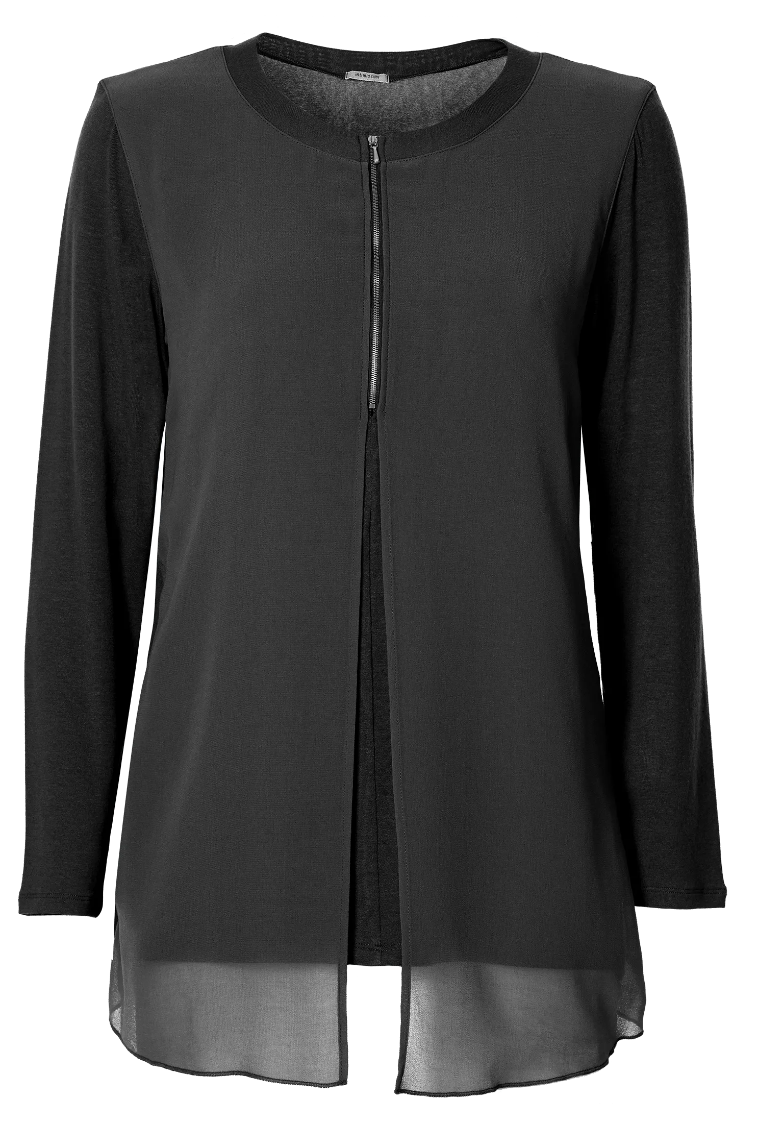 Blusa De Manga Comprida Com Zíper e Georgete – Preto