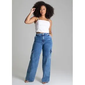 Calça Feminina Bruna e Bia Wide Leg Azul
