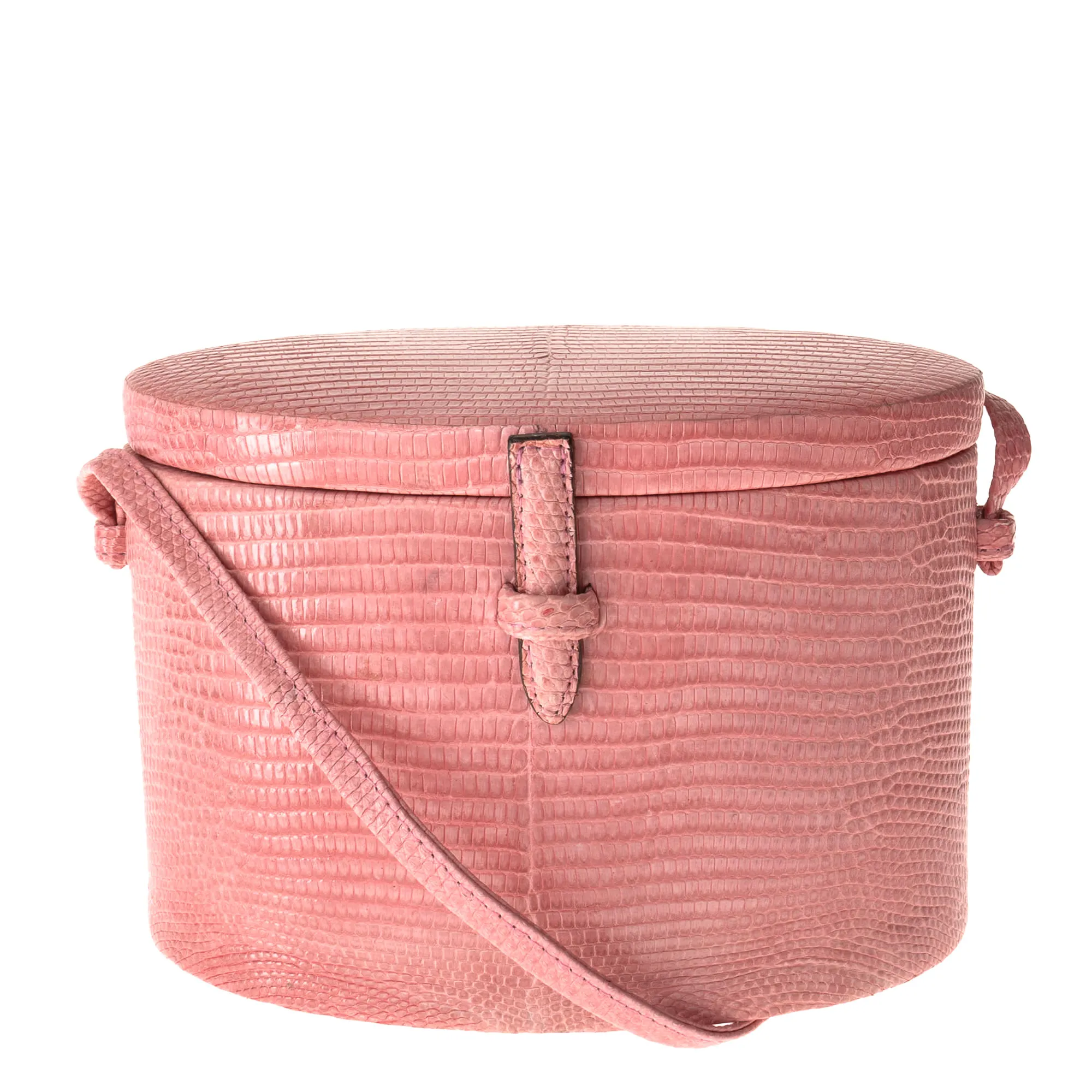 Bolsa The Round Baú Couro Exótico Rosa