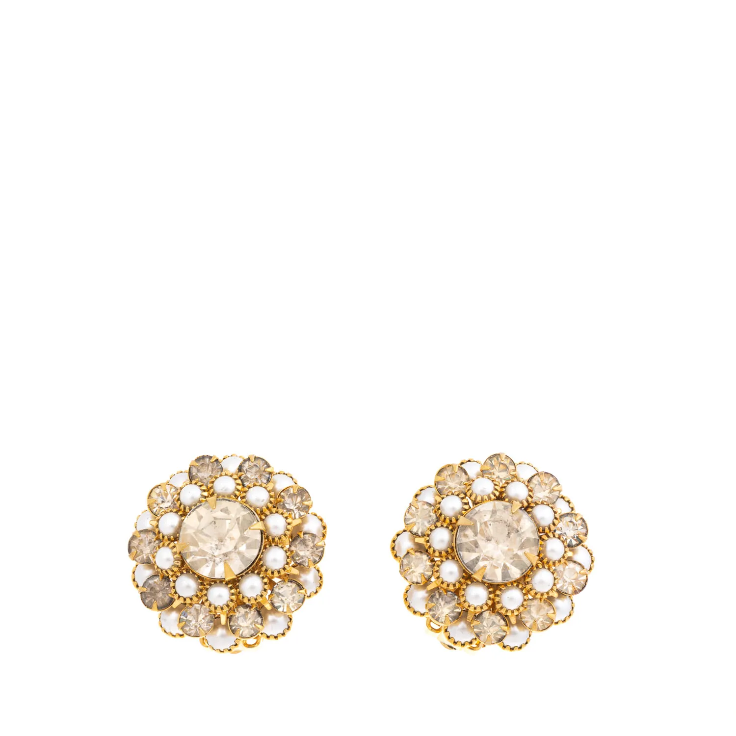 Brinco Vintage Pressão Dourado com Perolados e Cristais